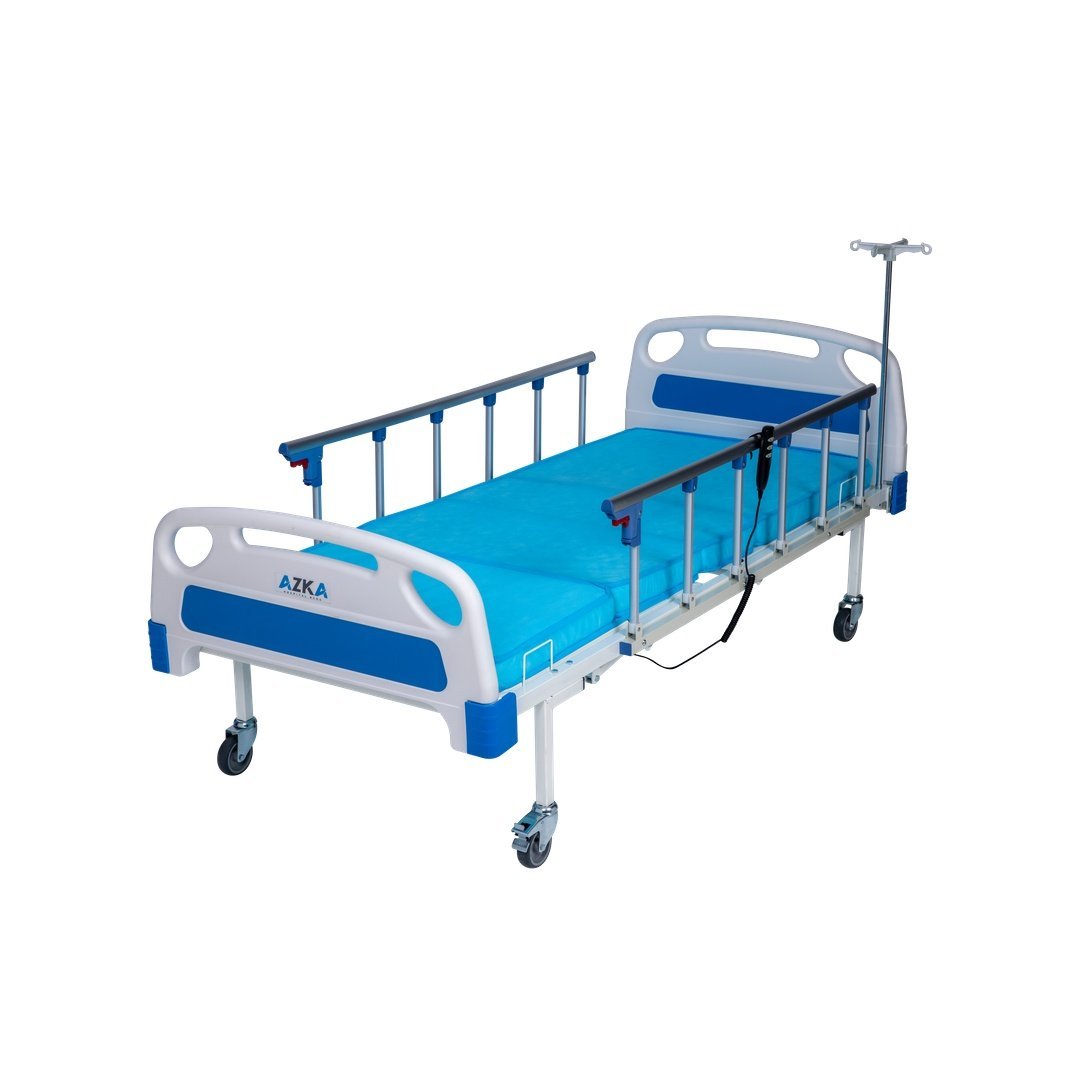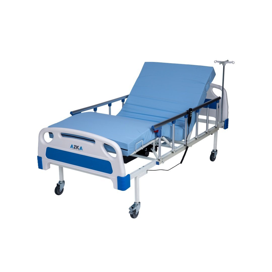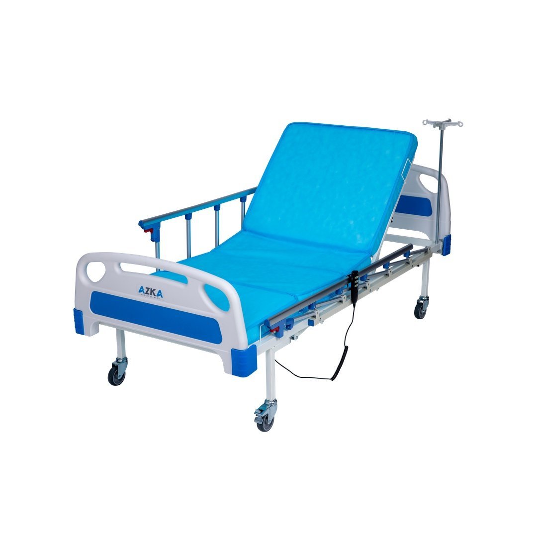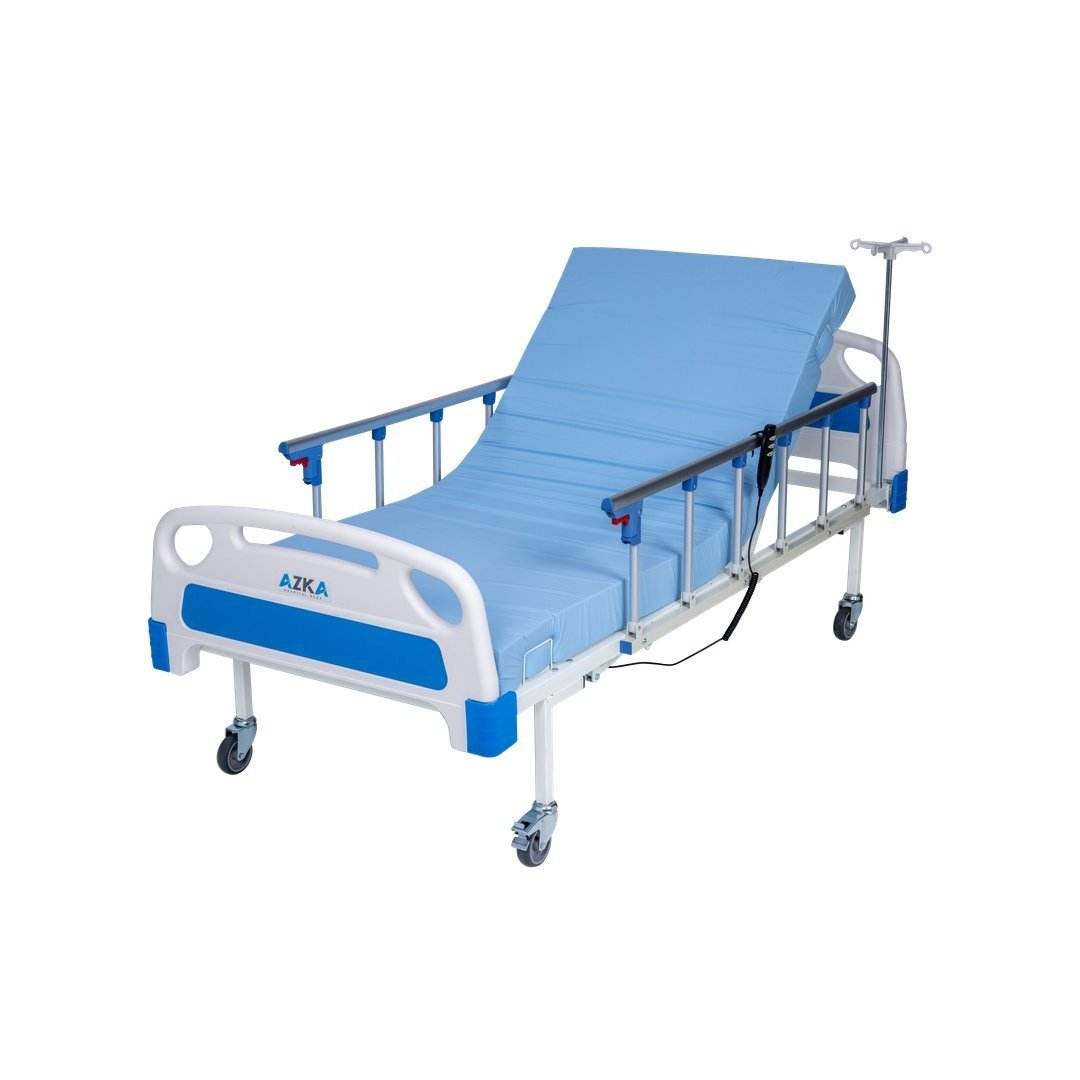 AZKA DE03 Dual Motorlu Alüminyum Korkuluklu Ekonomik Hasta Karyolası, iki motorlu ayar sistemi, hijyenik ABS başlık ve alüminyum korkuluklarıyla konforlu ve ekonomik hasta bakım çözümüdür.