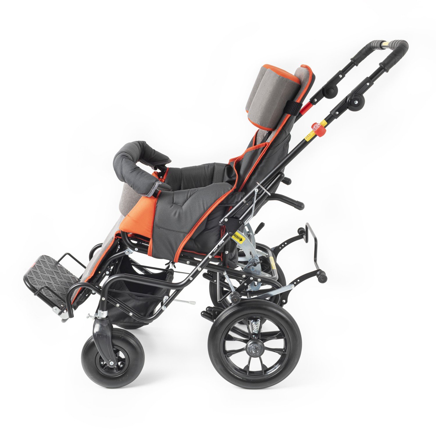 - 6-12 yaş aralığındaki çocuklar için özel olarak boyutlandırılmış, güvenli ve konforlu engelli çocuk puseti.